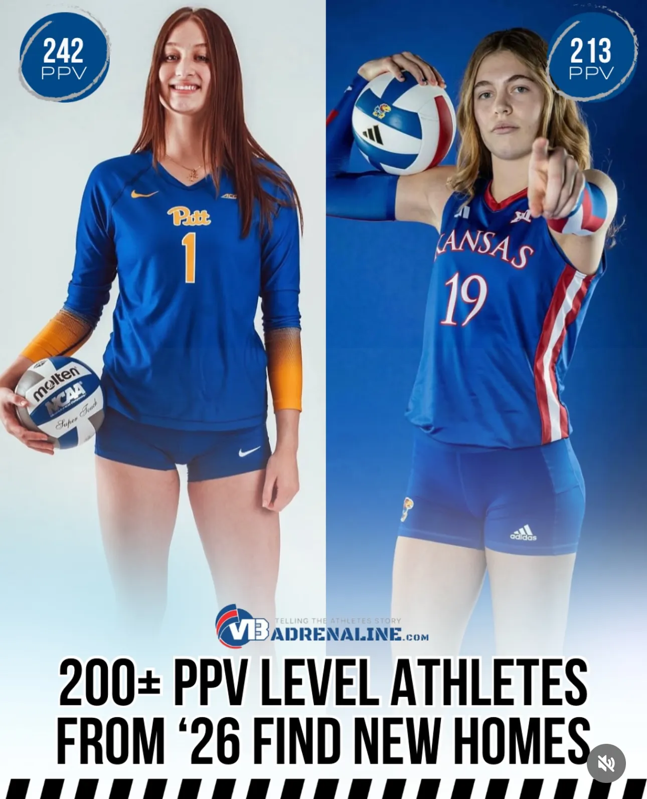 A couple of highly evaluated 2026 prospects choose new homes this week and their talents will be a welcome addition to each of their new schools. Avery Poulton joins the first coach she committed to, Matt Ulmer, but this time at the University of Kansas. The athletic Utah attacker already touches 10'8" and has "jumped" 20 PPV points to a 213 since her initial Summer evaluation. With the physical #s like that and her on-court efforts this season for Club V you can look for that PPV score to continue to go up. Jayhawk fans also have to love the athleticism Poulton adds with Taylor Stanley in the 2026 class. Then just this afternoon, Pitt got a verbal from former Florida commit Jessica Smallwood of Kentucky. The 6'6" prospect is a project at a couple of positions and will add extra talent to the Panthers best recruiting class ever. She is the 6th commit in the Class of 26 heading to Pitt and yet another with a PPV that is above a 215. The Panthers are definitely loading up with high-end ballers in 2026.