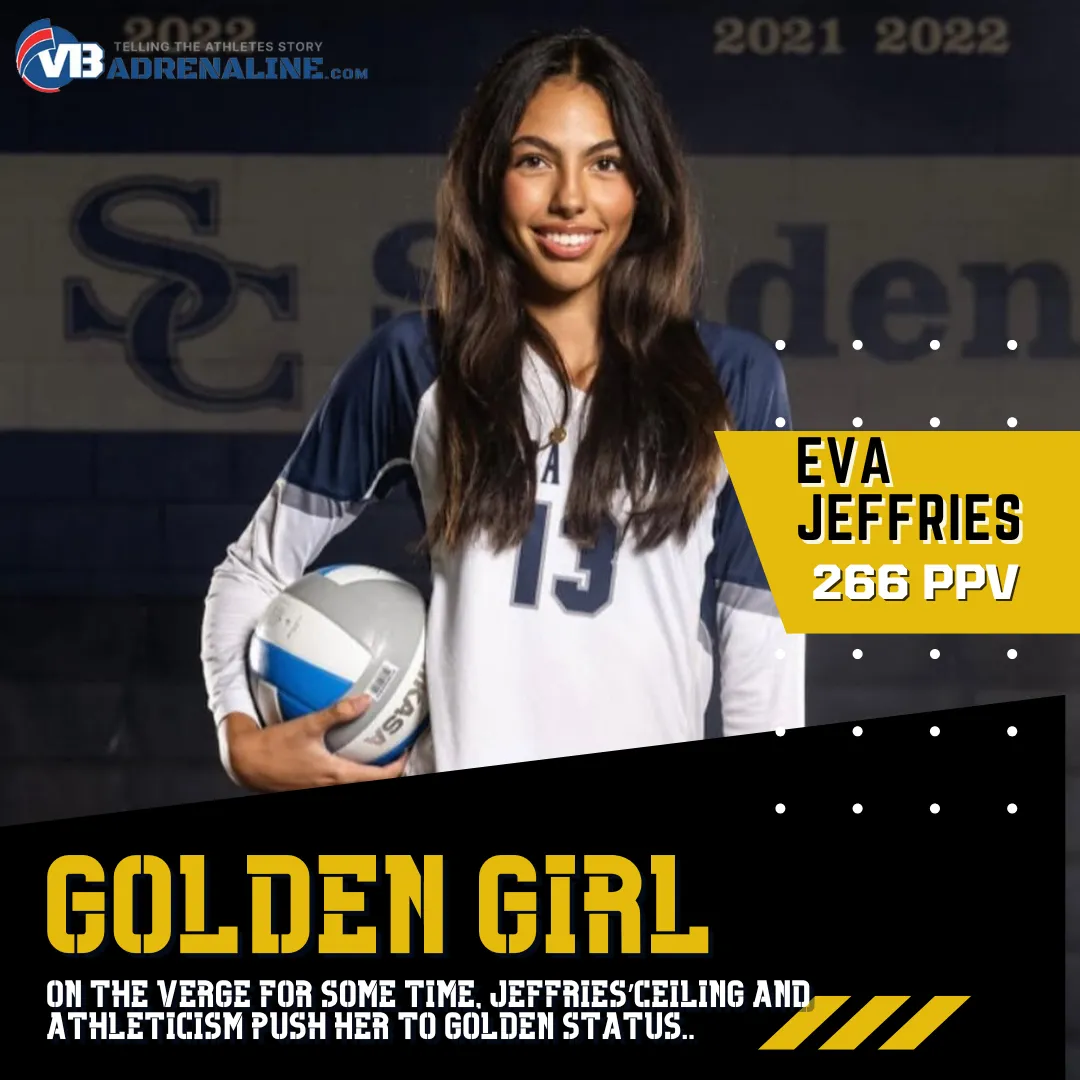 When you walk by a court in the 16 Open division this Spring it's hard to not notice 2027 OH Eva Jeffries of California. The OH definitely looks the part of a standout college athlete. Skills and physical numbers are matching up to the "High Ceiling" for the Cali standout and she is climbing on the short-list of some impressive college lists as June approaches. She has been on our radar for nearly a year and on the verge for sometime, but she finally makes the jump to GOLD LEVEL STATUS bumping her PPV to 266 overall. Watch for her name to be popular come June into July!
